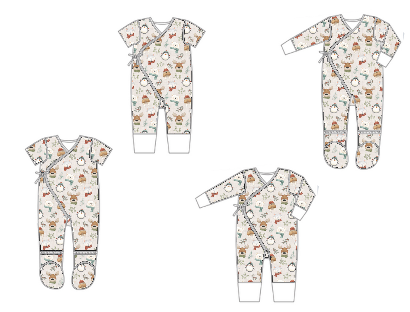 This is a listing is for one a crossover sleeper pictured above. This style of sleeper has cuffed legs and a crossover front with two snaps on either side to hold it closed. It is great for quick night time or anytime diaper changes.