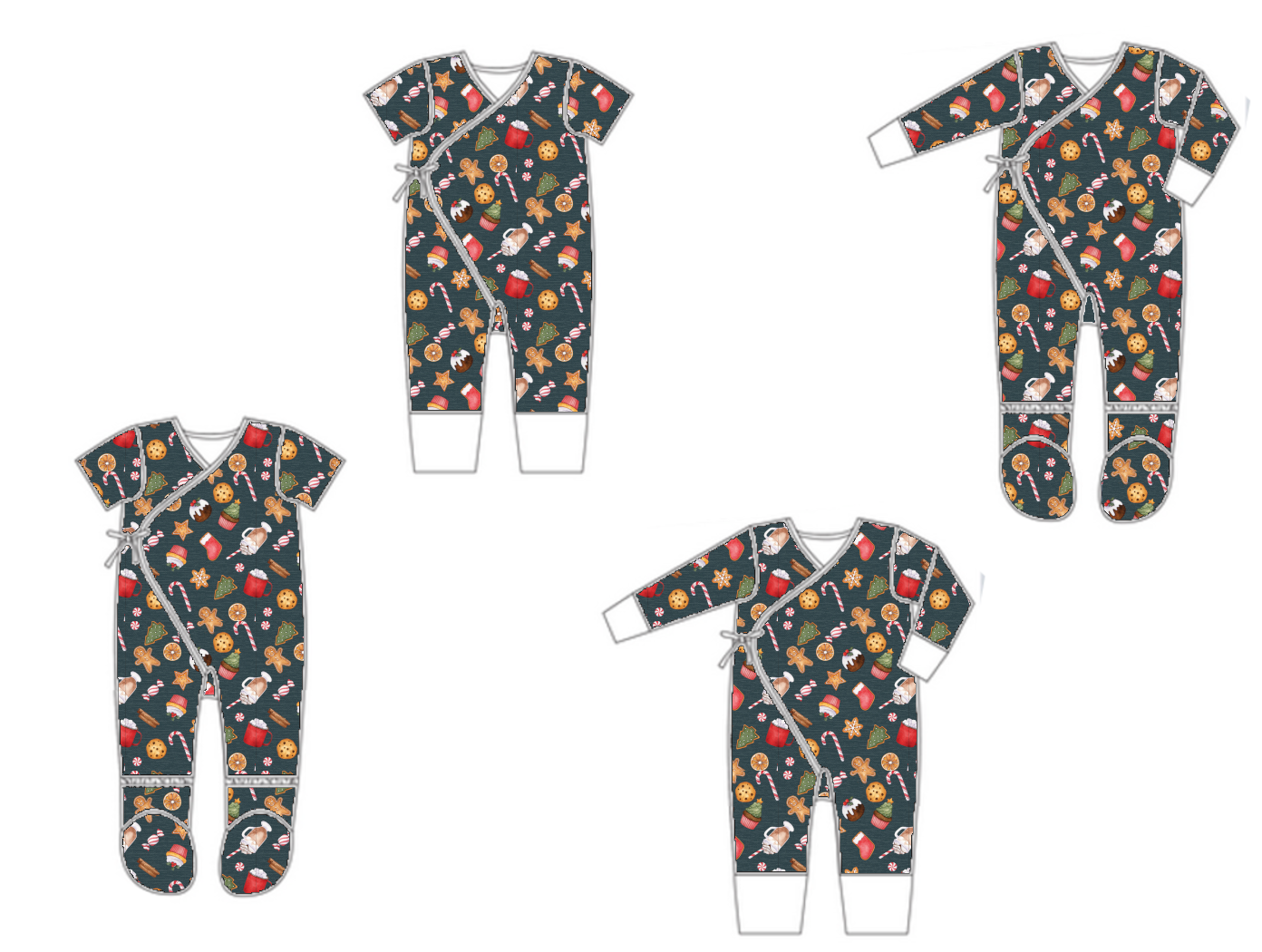 This is a listing is for one a crossover sleeper pictured above. This style of sleeper has cuffed legs and a crossover front with two snaps on either side to hold it closed. It is great for quick night time or anytime diaper changes.