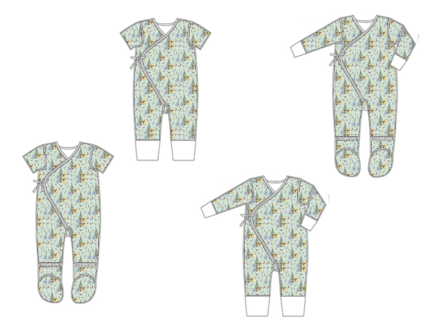 This is a listing is for one a crossover sleeper pictured above. This style of sleeper has cuffed legs and a crossover front with two snaps on either side to hold it closed. It is great for quick night time or anytime diaper changes.