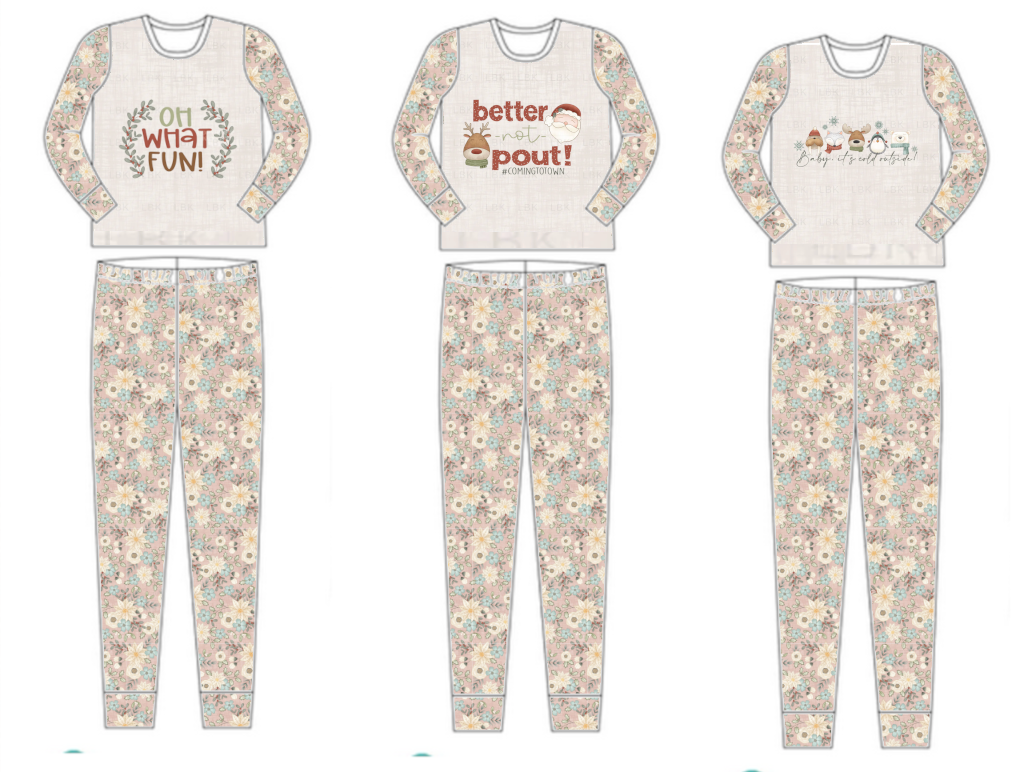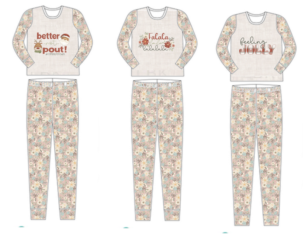 Jolly Pink Poinsettia Pajama Set - choose image