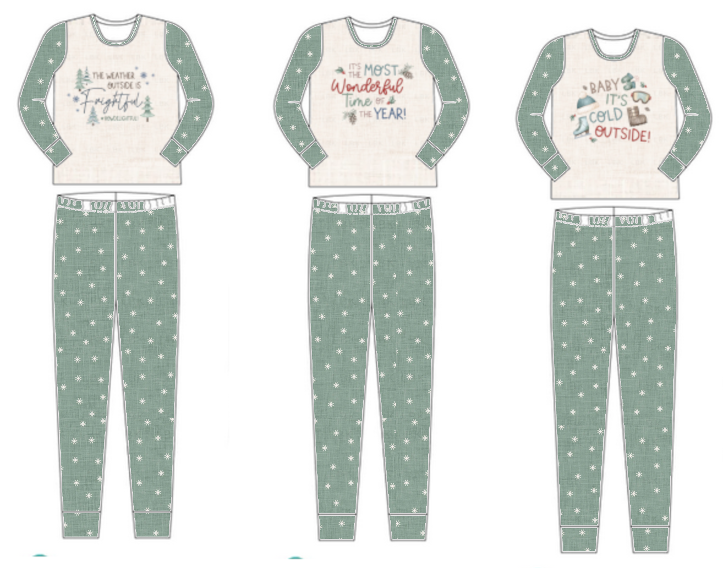 This listing is for a set of pajamas in your choice of size Newborn-12 youth*** Note on sizing: These pajamas are not treated with any chemical flame retardants so they are designed to be snug fitting. Please keep that in mind when picking a size - they are on the slimmer side, especially infant sizes.