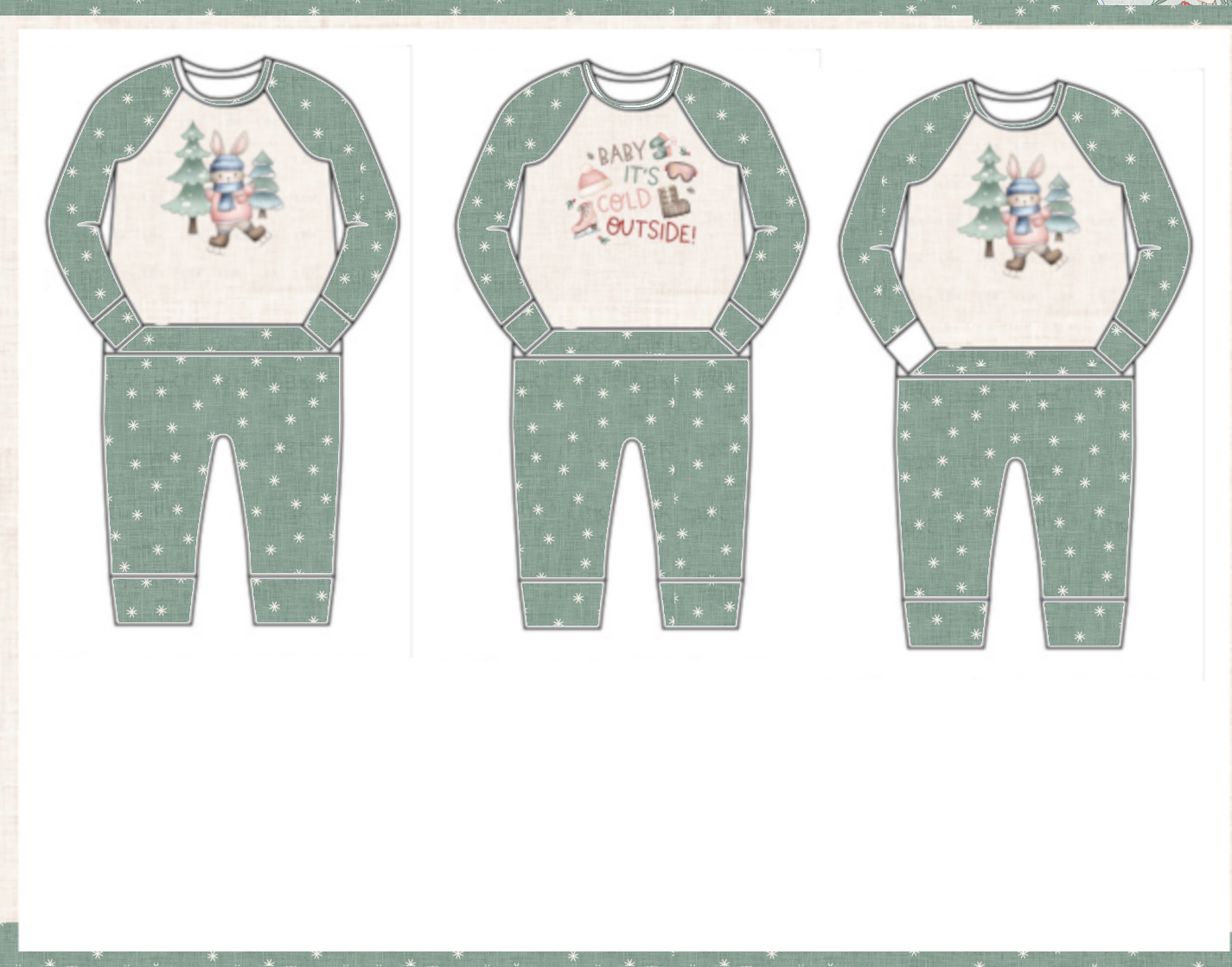 Be sure your little one has this sweet outfit for all of your Christmas or Holiday traditions. This romper is are soft and comfy and made with 95% cotton, 5% spandex. It is one piece with no snaps and no zippers. It has an envelope style opening in the front at the waist. To put your baby in this outfit you will put the shirt portion on first, Then you will stretch the waistband down and tuck your little ones legs in to put in the leg holes. If you would prefer less over the head please check out the bear hug wrap romper. This set of Christmas pajamas is hand cut and sewn in the state of North Carolina. Please view our sizing below and if you are in doubt sizing up is always recommended.