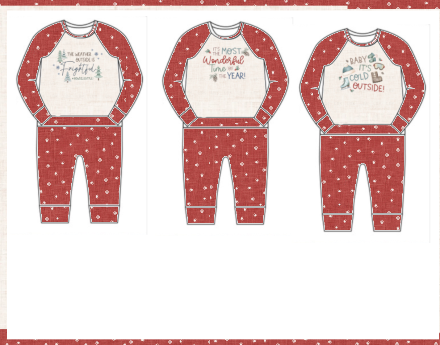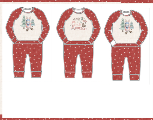 Be sure your little one has this sweet outfit for all of your Christmas or Holiday traditions. This romper is are soft and comfy and made with 95% cotton, 5% spandex. It is one piece with no snaps and no zippers. It has an envelope style opening in the front at the waist. To put your baby in this outfit you will put the shirt portion on first, Then you will stretch the waistband down and tuck your little ones legs in to put in the leg holes. If you would prefer less over the head please check out the bear hug wrap romper. This set of Christmas pajamas is hand cut and sewn in the state of North Carolina. Please view our sizing below and if you are in doubt sizing up is always recommended.