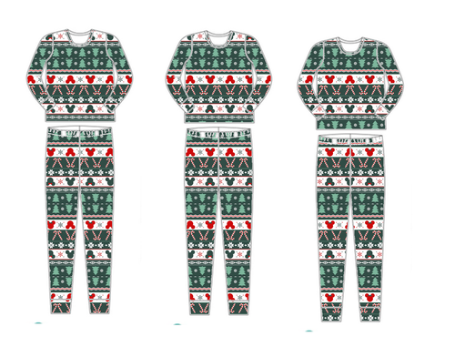 Two Piece Pajama Set Fair Isle Mouse Ears - choose shirt image