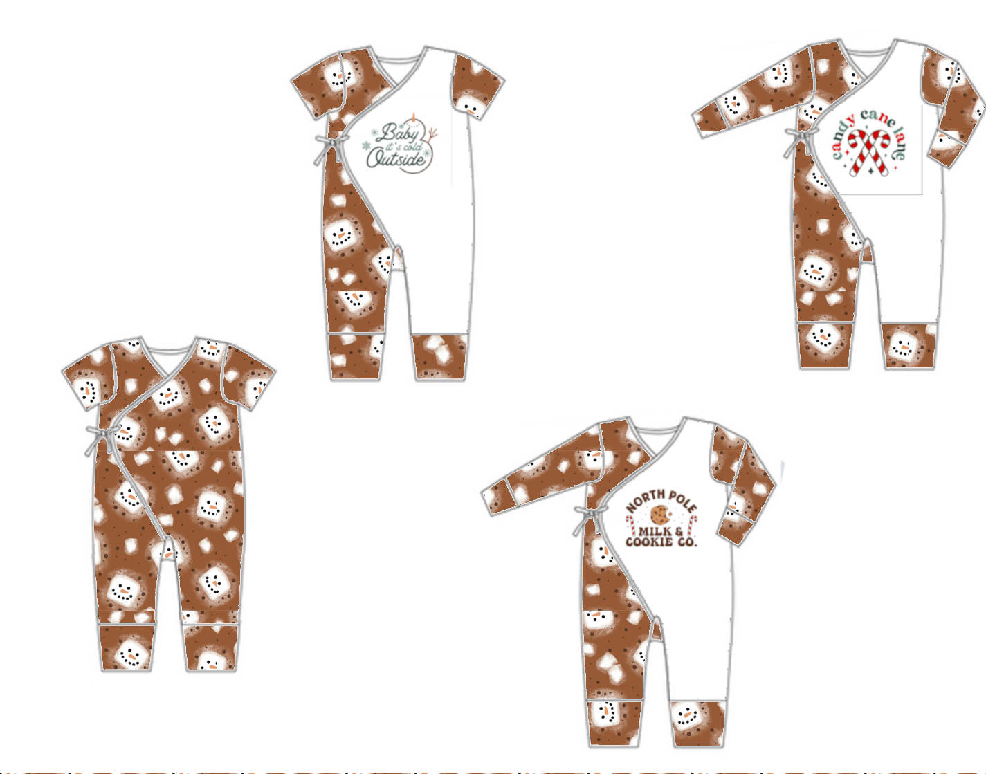 This is a listing is for one a crossover sleeper pictured above. This style of sleeper has cuffed legs and a crossover front with two snaps on either side to hold it closed. It is great for quick night time or anytime diaper changes. This sleeper will be long sleeved with cuffs and long pants with cuffs. I can change it to short sleeves or footies upon request.